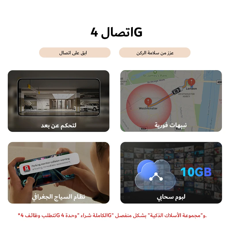 * تتطلب وظيفة 4G الكاملة شراء منفصلة لـ "وحدة 4G" و "مجموعة الأسلاك الصلبة الذكية"